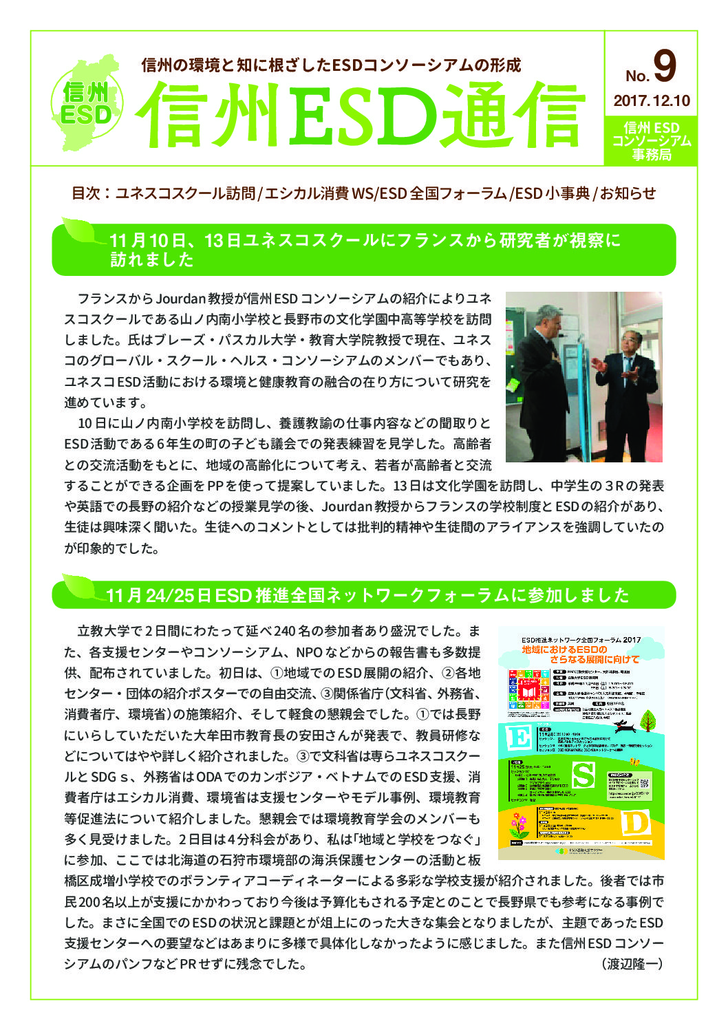 信州ESDコンソーシアム成果発表&交流会 2月3日(土) 信州大学教育学部図書館2階大講義室で10:00~15:30でおこなわれます。ユネスコスクールの児童生徒による成果発表や各組織のポスター発表および意見交換などがあり …